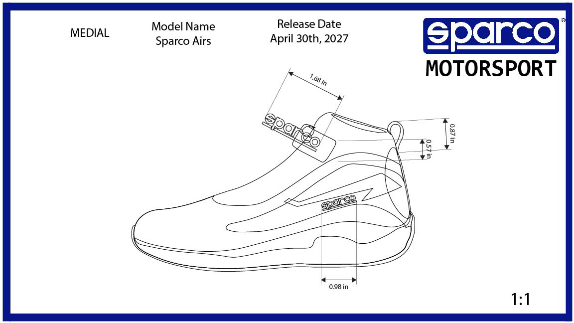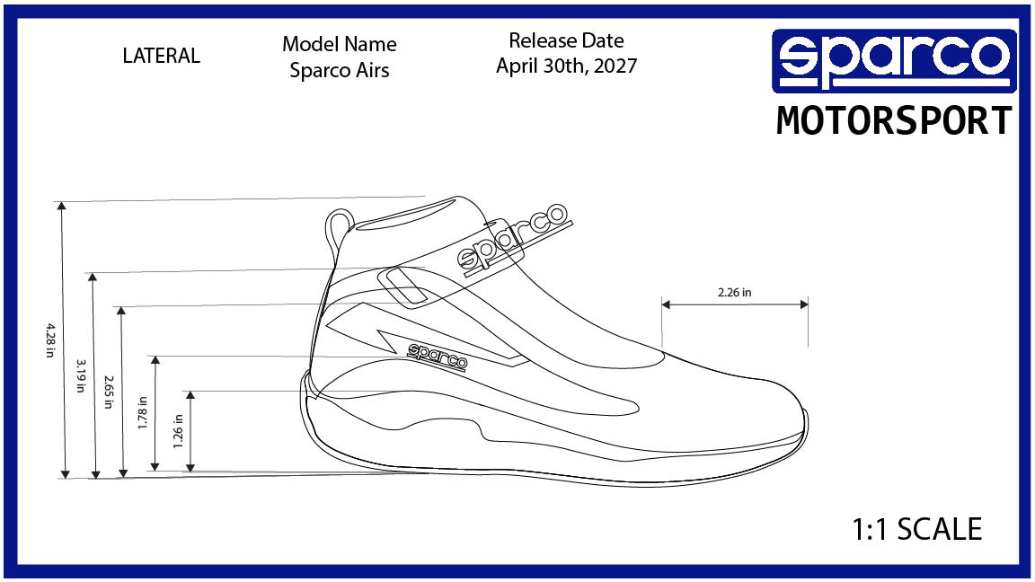 The footwear must reflect the demands of modern motorsport. It should feel lightweight, responsive, and precise—enhancing pedal control and driver connection—while expressing a sharp, performance-driven design language true to Sparco’s racing DNA.